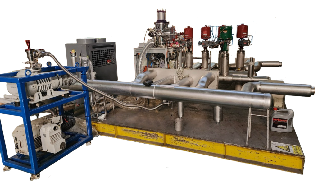 This product is equipment designed to create a vacuum state by expelling gas from a container. Unlike conventional vacuum systems that use rotary pumps, this equipment significantly reduces the time required to achieve a high vacuum state (5×10⁻⁴ torr), thereby shortening operation times.